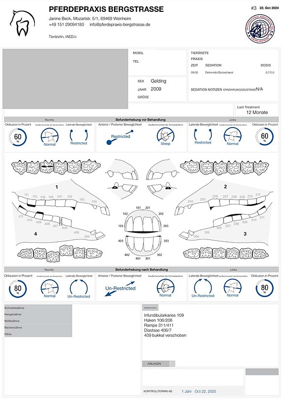 - Untersuchung der Mundhöhle und Zähne und Erstellung eines Dental-Charts (Zahnbogen)